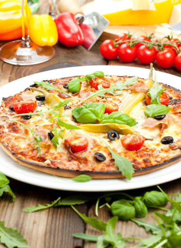 Mushrooms, onion, roast peppers, cherry tomato, spinach and rosé sauce.